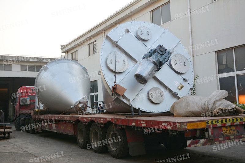描述:錐形雙螺旋混合機(jī)內(nèi)部安裝非對(duì)稱傾斜螺旋,雙螺旋自身旋轉(zhuǎn),提升物料,并有公轉(zhuǎn)減速箱驅(qū)動(dòng),沿錐體中心軸公轉(zhuǎn),360度攪拌物料,擁有非破壞性攪拌以及快速且無殘留卸料的特點(diǎn)。