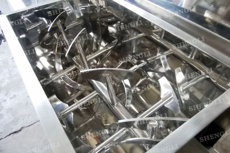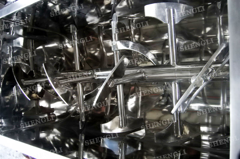 工作原理:槳葉式混合機(jī)采用U型筒體,內(nèi)設(shè)平行主軸,主軸上安裝若干傾角式槳葉刀,不僅能快速高效的攪拌物料,且不會(huì)破壞物料,不會(huì)卡料。