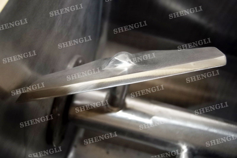 工作原理:槳葉式混合設(shè)備采用U型筒體,內(nèi)設(shè)平行主軸,主軸上安裝若干傾角式槳葉刀,不僅能快速高效的攪拌物料,且不會破壞物料,不會卡料。