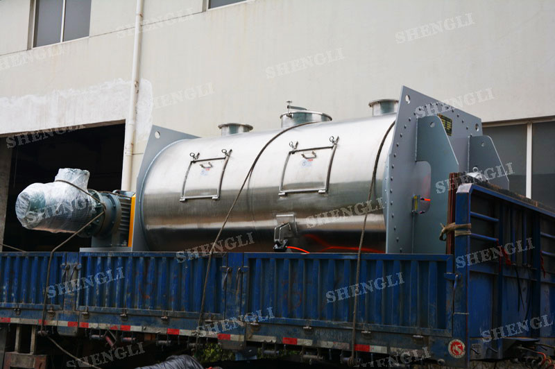 工作原理:犁刀混合機(jī)采用臥式圓柱筒體,內(nèi)設(shè)平行主軸,主軸上安裝若干犁式刀頭,通過較快的旋轉(zhuǎn)速度,分割、重合物料,實(shí)現(xiàn)快速攪拌的功能,常結(jié)合1500-3000轉(zhuǎn)高速剪切飛刀相互作用。