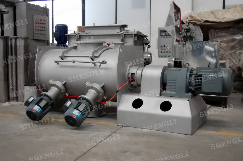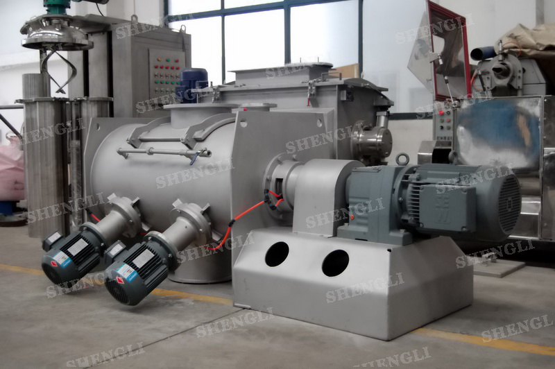 工作原理:犁刀式混合機采用臥式圓柱筒體,內(nèi)設(shè)平行主軸,主軸上安裝若干犁式刀頭,通過較快的旋轉(zhuǎn)速度,分割、重合物料,實現(xiàn)快速攪拌的功能,常結(jié)合1500-3000轉(zhuǎn)高速剪切飛刀相互作用。