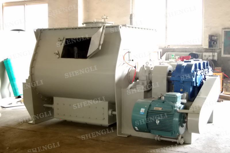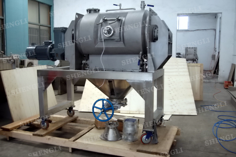 工作原理:犁刀式攪拌機(jī)采用臥式圓柱筒體,內(nèi)設(shè)平行主軸,主軸上安裝若干犁式刀頭,通過較快的旋轉(zhuǎn)速度,分割、重合物料,實現(xiàn)快速攪拌的功能,常結(jié)合1500-3000轉(zhuǎn)高速剪切飛刀相互作用。