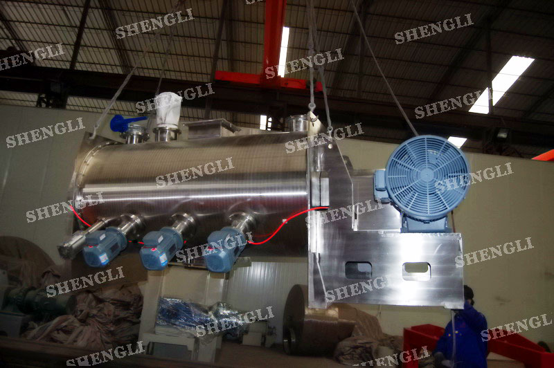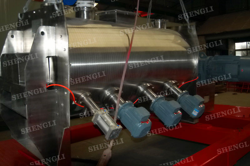 工作原理:犁刀式混料機(jī)采用臥式圓柱筒體,內(nèi)設(shè)平行主軸,主軸上安裝若干犁式刀頭,通過較快的旋轉(zhuǎn)速度,分割、重合物料,實(shí)現(xiàn)快速攪拌的功能,常結(jié)合1500-3000轉(zhuǎn)高速剪切飛刀相互作用。