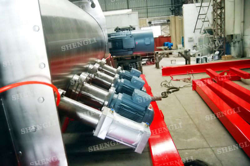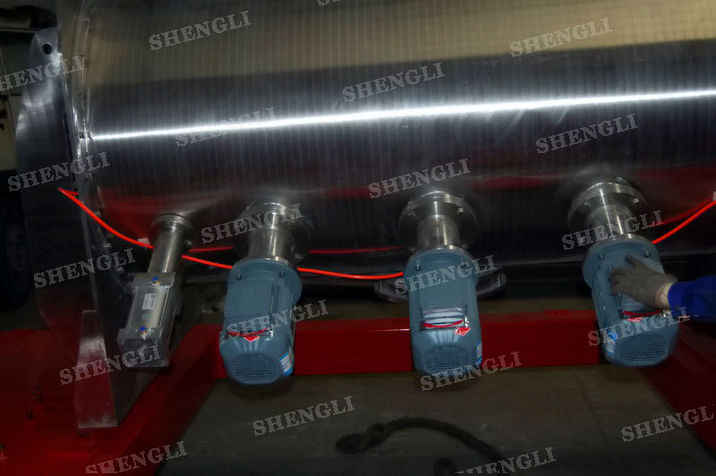 設(shè)備配置:配置SEW變頻電機(jī)K系列減速機(jī),直角安裝;搭載三臺3000轉(zhuǎn)每分鐘的高速飛刀;開設(shè)快開式檢修門;出料口采用氣動錯位閥;主軸與飛刀主軸采用氣密封;筒體上設(shè)氣動在線取樣閥;設(shè)備內(nèi)表面鏡面拋光、外表面拉絲亞光。