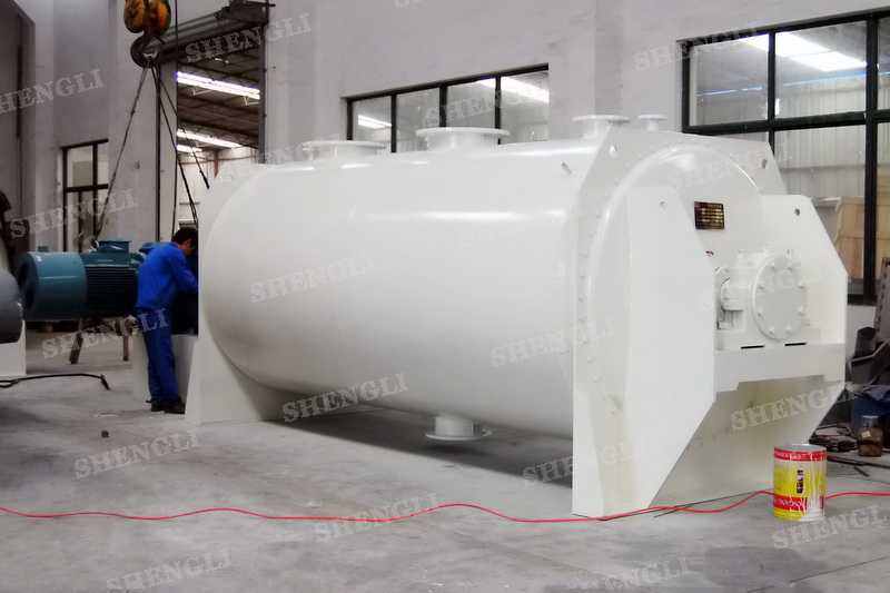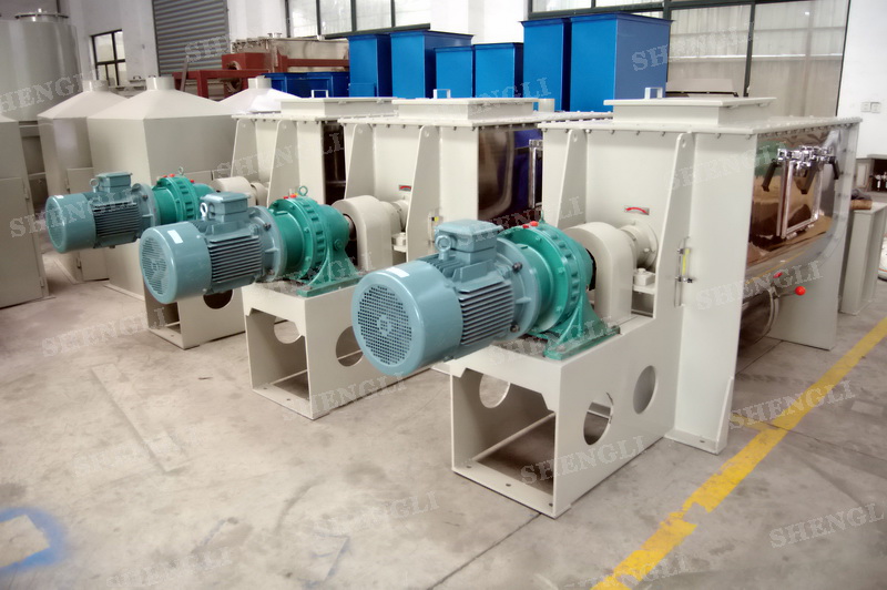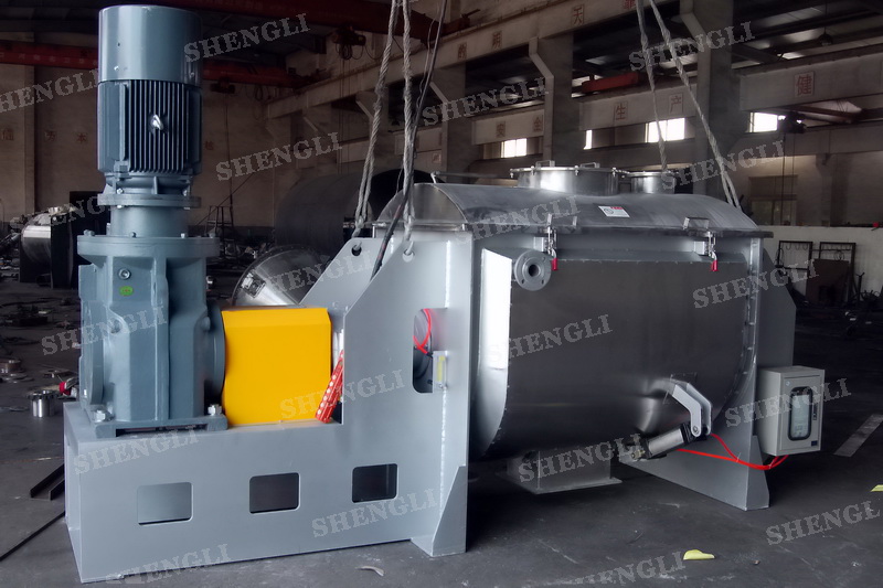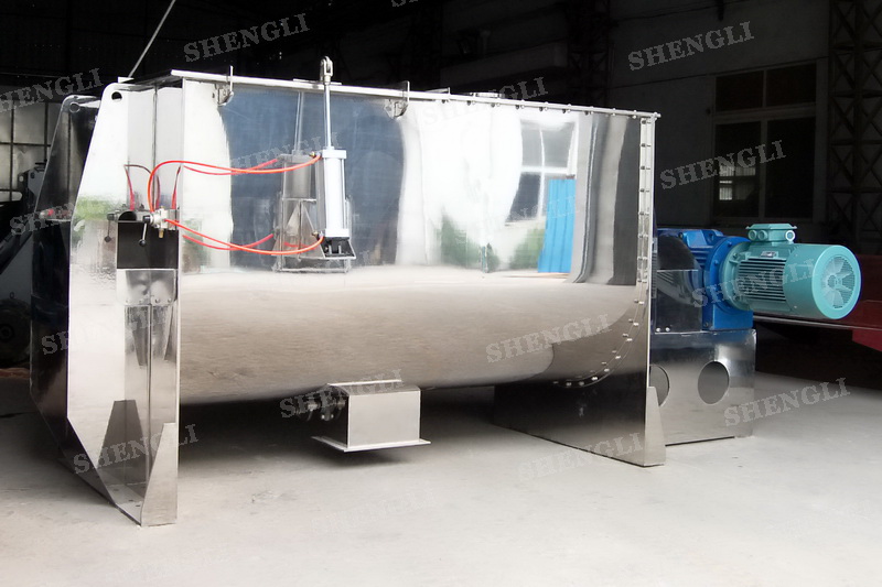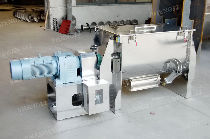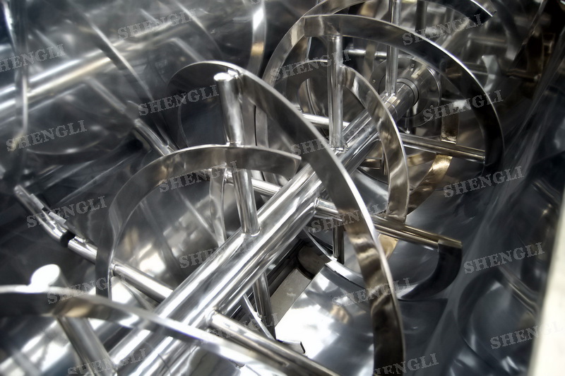 工作原理:螺帶混合機(jī)采用U型筒體,內(nèi)裝平行主軸,主軸上安裝正反雙向的盤條螺帶,不同維度螺帶分內(nèi)螺帶與外螺帶,物料在螺帶的驅(qū)使下反復(fù)參混,能夠快速高效的混合。