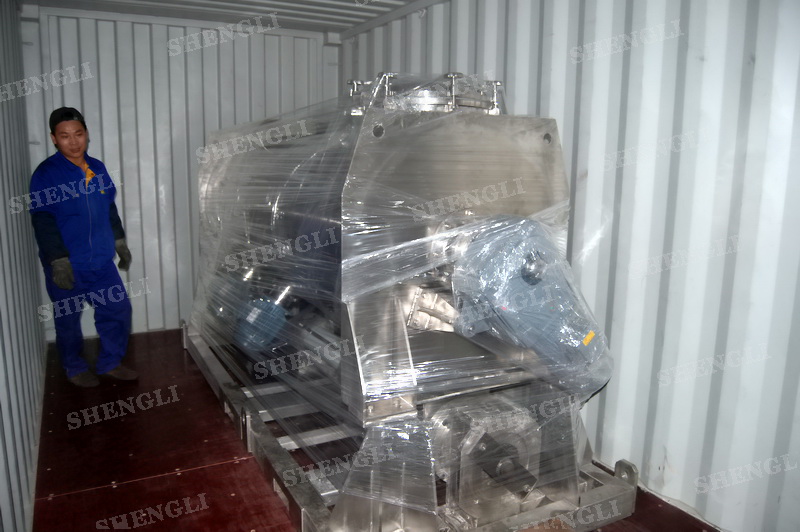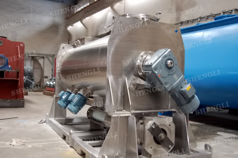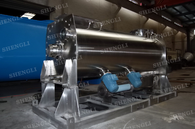 工作原理:螺帶攪拌設(shè)備采用U型筒體,內(nèi)裝平行主軸,主軸上安裝正反雙向的盤(pán)條螺帶,不同維度螺帶分內(nèi)螺帶與外螺帶,物料在螺帶的驅(qū)使下反復(fù)參混,能夠快速高效的混合。