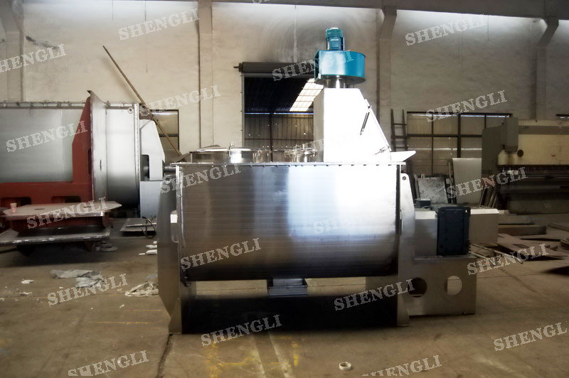 工作原理:螺帶式混合機采用U型筒體,內裝平行主軸,主軸上安裝正反雙向的盤條螺帶,不同維度螺帶分內螺帶與外螺帶,物料在螺帶的驅使下反復參混,能夠快速高效的混合。