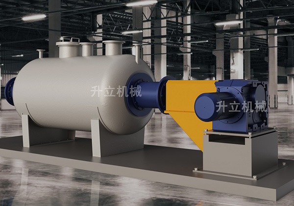 具有臥式筒體,內(nèi)裝螺帶旋轉(zhuǎn)軸,軸上內(nèi)、外螺帶相互推送物料,攪刀快速翻轉(zhuǎn)物料,在高溫狀態(tài)下使物料不停運(yùn)動(dòng)實(shí)現(xiàn)動(dòng)態(tài)均勻受熱。