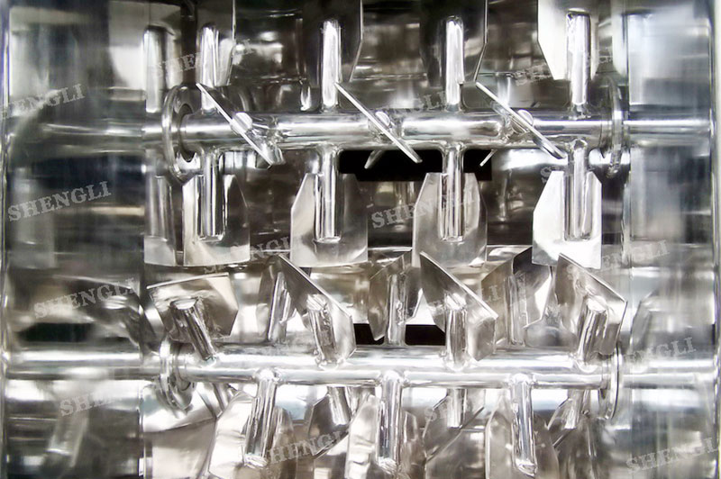 工作原理:無重力混合機采用雙U型筒體,內(nèi)裝平行的雙主軸,主軸設有對稱的多組槳葉,其雙軸的運行軌跡部分重合形成嚙合空間,雙軸在受雙電機同步驅(qū)動,同步的對稱向外翻攪物料,致使物料能夠達到瞬間失重點,該設備具備高效物料無差別的混合能力。