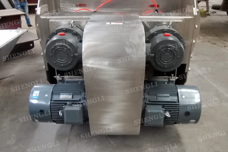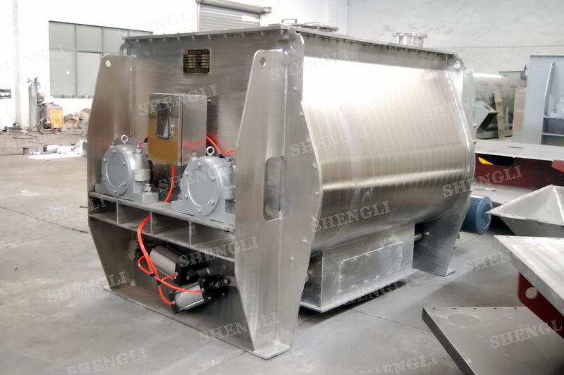 工作原理:無重力混合機(jī)采用雙U型筒體,內(nèi)裝平行的雙主軸,主軸設(shè)有對(duì)稱的多組槳葉,其雙軸的運(yùn)行軌跡部分重合形成嚙合空間,雙軸在受雙電機(jī)同步驅(qū)動(dòng),同步的對(duì)稱向外翻攪物料,致使物料能夠達(dá)到瞬間失重點(diǎn),該設(shè)備具備高效物料無差別的混合能力。
