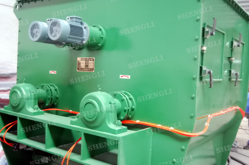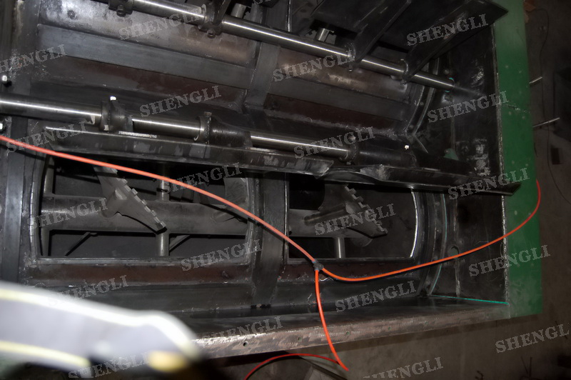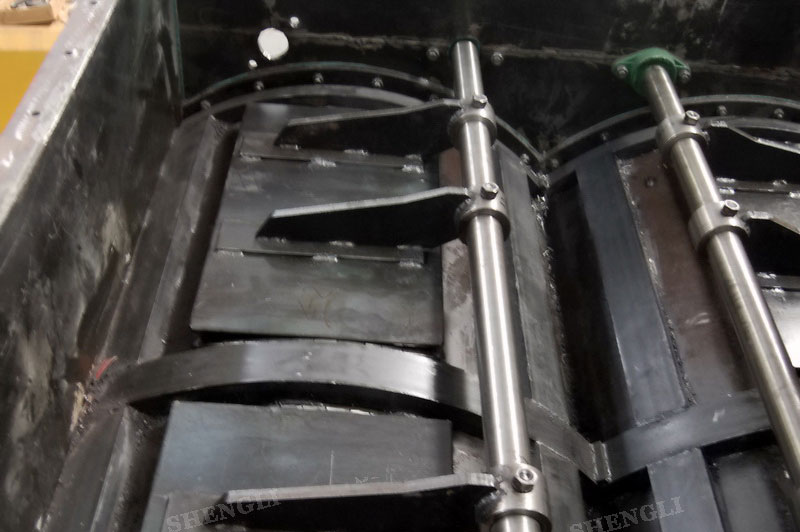 工作原理:雙軸攪拌設(shè)備采用雙U型筒體,內(nèi)裝平行的雙主軸,主軸設(shè)有對稱的多組槳葉,其雙軸的運行軌跡部分重合形成嚙合空間,雙軸在受雙電機同步驅(qū)動,同步的對稱向外翻攪物料,致使物料能夠達到瞬間失重點,該設(shè)備具備高效物料無差別的混合能力。