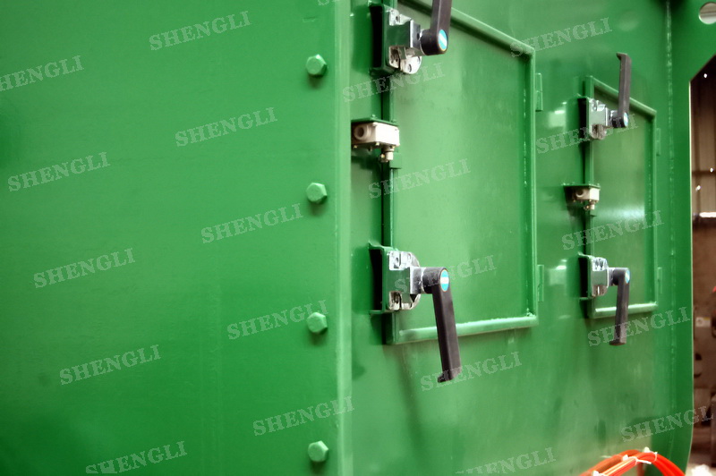 設(shè)備配置:設(shè)備搭載雙驅(qū)動同步行星齒輪減速機;設(shè)備主軸采用填料密封;筒側(cè)雙向開設(shè)檢修門;筒體底部配置氣動雙翻板閥;